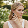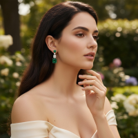 Vintage inspired heirloom earrings - embellished with clear cubic zirconia crystals and sparkly emerald square cute crystals. Plated in 18K White gold. Dimensions: 3.5cm x 1.2cm wide