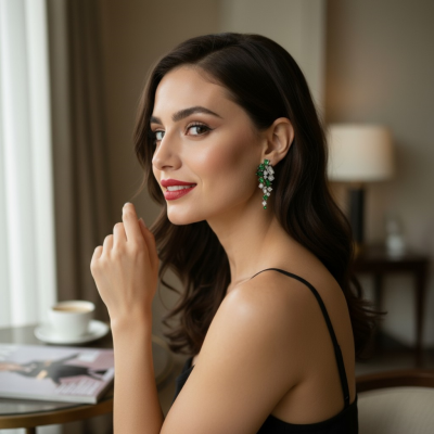 CUBIC ZIRCONIA COLLECTION - HOLLYWOOD GLAM EARRINGS - CZER708 EMERALD