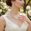 Set upon a high-quality silver finish, the necklace sits gracefully along the neckline, while the matching drop earrings add elegant movement and sparkle.