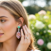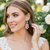 Create a look to remember with the dynamic splendour and astral fire of these enigmatic earrings. Harnessing the glory of rich emerald hued trillion cut crystals, framed by pavé set clear crystals and the sumptuous tones of show stopping pink tourmaline freeform cut crystals, the impact of this combination is luxe glamour at its best. An intoxicating look for the bride who knows her worth.