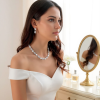 CUBIC ZIRCONIA COLLECTION - LUXE PEARL NECKLACE SET - CZNK 272 SILVER