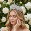 Step into your moment of majesty and become a vision of radiant beauty with this breathtaking crystal masterpiece. Designed to evoke the allure of legendary queens, this magnificent piece is a true symphony of sparkle and sophistication, bringing fire, brilliance, and regal elegance to your look. Intricately crafted and exquisitely detailed, the design is perfectly balanced through the artful use of crystal cuts and varying stone sizes, creating depth, dimension, and captivating light reflection from every angle. The result is a statement accessory that transforms any ensemble from ordinary to utterly enchanting. Embellished with high-quality cubic zirconia and glass crystals, and finished in a high-shine silver tone, this stunning piece offers both luxury and luminosity. Measuring approximately 15 cm wide by 6 cm high, it creates a striking silhouette worthy of a modern-day queen.