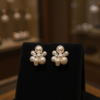 CUBIC ZIRCONIA COLLECTION - PEARL CLUSTER EARRINGS - SILVER CZER713