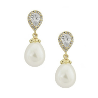 Cubic zirconia collection - chic and elegantly styled pearl earrings in a unique design with clear cz crystals on a rose gold finish. Size is approx 2cm long