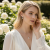 The necklace is finished with an adjustable chain for a perfect fit, while the matching earrings complete the look with refined elegance. With a pendant drop and earring length of approximately 2.5 cm, this set is ideal for weddings, bridal wear, bridesmaids, evening events, black-tie occasions, and formal celebrations.