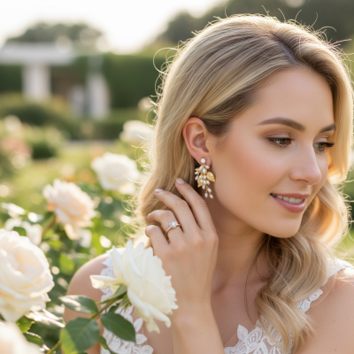 Allow the sumptuous radiance of these pearl earrings to bring a shimmering glow to perfect your look. A show stopping astral burst of freshwater pearls and hand painted gold leaves are hand wired onto a gold finish vine. Dazzle and delight onlookers with the lustre of this finishing touch. Details; High quality crystals. freshwater pearls. Dimensions; Earrings are approx 3cm long