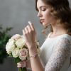 Glitzy shimmer bracelet - add a touch of sparkle - chic and stylish bracelet with three rose pink pear shaped cubic zirconia crystals . adjustable chain. Pear crystal size is 1cm x 0.5cm Plated in 925 Sterling silver .