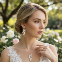 Chic and elegant in design - cubic zirconia necklace set complete with matching earrings - vintage inspired embellished with high quality clear cz crystals on a gold finish. Pendant drop is 2.5cm long with a chain that is adjustable - earring size at 4.2cm long
