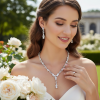 CUBIC ZIRCONIA COLLECTION - SIMULATED DIAMOND DROP NECKLACE SET - CZNK223 SILVER