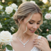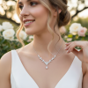 Harness the glamour of the gilded screen and allow yourself to be a screen goddess for the day. This breathtaking necklace exudes elegance and splendour. A magnificent pear cut crystal holds court surrounded by a symphony of brilliant and Marquise glass cut crystals. Plated in 18k white gold with an adjustable chain.