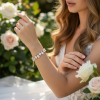 Create authentic red carpet drama on your special day with the exquisite aesthetic of these show-stopping bracelet. Flawless pear cut crystals radiate astral fire and brilliance at every angle canopied by a glorious motif of pear, brilliant and cushion cut crystals. Details; High quality cubic zirconia crystals. High shine gold finish. 16cm long with a 5cm adjustable chain.