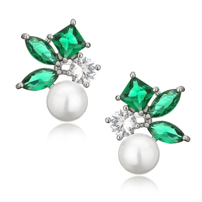 CUBIC ZIRCONIA COLLECTION - STARLET CHIC EARRINGS - CZER709 EMERALD