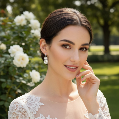 CUBIC ZIRCONIA COLLECTION - STARLET GEM EARRINGS - CZER730 SILVER
