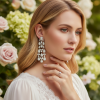 Create authentic red carpet drama on your special day with the exquisite aesthetic of these show-stopping earrings. Flawless pear and square cut crystals radiate astral fire and brilliance at every angle. Adorn yourself with the sumptuous luxury of these sublime earrings and allow the spellbinding aura of the silver screen to permeate the magic of your day. Details; High quality cubic zirconia crystals. Plated in 18k white gold. Dimensions are approx 5.5cm