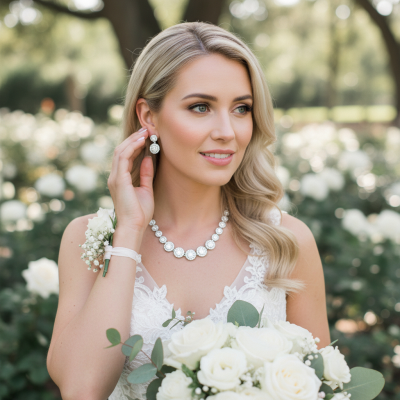 Harness the glamour of the gilded screen and allow yourself to be a screen goddess for the day. This breathtaking necklace exudes elegance and splendour. A magnificent round cut crystal holds court surrounded by a symphony of brilliant clear cut crystals. Plated in a silver finish with an adjustable chain. Complete with matching earrings. Dimensions:- 40cm necklace with a 5cm adjustable chain, matching earrings 2.4cm long