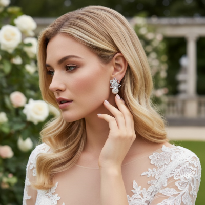 Perfect for brides, bridesmaids, and special occasions, these stylish earrings bring timeless glamour and fairytale charm to your most memorable moments.