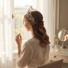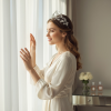 Allow yourself to be crowned by the regal beauty of this exquisite headpiece. An utterly magical work of intense crystal craftsmanship, catch the light and radiate like the goddess you are with a multitude of Marquise clear cut crystals. The exquisite symmetry of this piece will help you to glow and shine like a star on your day of enchantment. Details; High quality cubic zirconia crystals. High shine silver finish. Dimensions embellishment 22cm x 6.5cm