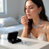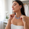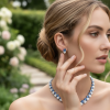 Elevate your elegance with this exquisite statement necklace and earring set, featuring a stunning arrangement of sapphire and clear cut cubic zirconia crystals set against a lustrous silver finish. Plated in luxurious 18k white gold, necklace size is 43cm in length and earrings measure 1.5cm in length, making them the perfect accessory to enhance any outfit. Ideal for special occasions or to add a touch of glamour to your everyday look, this stunning set is a must-have addition to your jewellery collection.