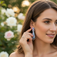 CUBIC ZIRCONIA COLLECTION - STATEMENT WATERFALL EARRINGS - SAPPHIRE CZER900