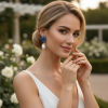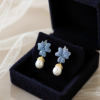 CUBIC ZIRCONIA COLLECTION - VINTAGE FLOWER EARRINGS - CZER803 BLUE