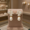 Add a touch of Vintage Glamour with these simulated pearl drop earrings with golden sparkle. Statement earrings, effortlessly blending vintage elegance with modern flair. Crafted with shimmering simulated pearls that cascade gracefully, these earrings are a timeless choice for any occasion. A touch of playful personality is added with golden glow of clear crystals Finished with a luxurious 18k gold plating, these earrings are sure to elevate your look from day to night. Dimensions 4.7cm x 2.5cm