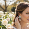 CUBIC ZIRCONIA COLLECTION - VINTAGE INSPIRED PEACOCK FEATHER DROP EARRINGS - CZER918