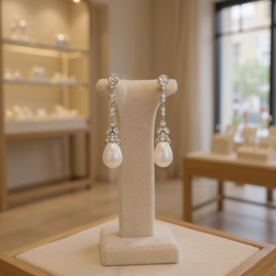 The earrings feature an alluring combination of shimmering clear crystals and simulated ivory pearls, which are delicately embellished to create a mesmerising play of light and texture. The crystals, with their sparkling brilliance, catch the eye and add a touch of glamour to any outfit, while the simulated pearls, with their subtle luster, provide a classic and refined touch.