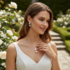 Embrace the charm of yesteryear with these exquisite Vintage Shimmer necklace set complete with matching earrings . The simulated ivory pearls and clear cubic zirconia crystals evoke a sense of timeless elegance, while the gold plating adds a modern, lustrous touch. Whether you're dressing up for a special occasion or simply want to add a touch of vintage-inspired sophistication to your everyday look, this necklace set will become your new signature accessory. Details:-• Elegant design features simulated ivory pearls and clear cubic zirconia crystals • Plated in radiant 18K gold for a high-end, luxurious finish • Earrings measure 2.5cm long with 1cm pearls for a sophisticated, statement look • Elevate any outfit from casual to couture with these versatile, eye-catching earrings
