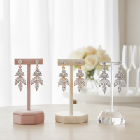 Like gilded wisteria blooms, these glistening points of light will bring cool fire and radiance to your day. Exquisitely clear Marquise cut crystal leaves form a cascade of radiance diminishing in size and culminating with an exquisite crystal leaf. A captivating way to bring dazzling luminosity to your special day.