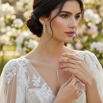 Dainty feather necklace set - inspired by vintage - Feather style pendant necklace set complete with matching earrings. Embellished with brilliant clear cut marquise crystals on a silver finish. Earrings are 3cm x 0.5cm wide. Pendant size is 3.2cm with an adjustable chain.