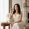 Let the sumptuous rose gold scrollwork of this gleaming piece crown your beautiful day. Decadent rococo flourishes, highlighted by Marquise and brilliant cut crystals, faceted beads and champagne shimmering pearls will enchant onlookers and bring an ethereal aura to your magical day.