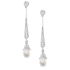 From the Cubic Zirconia Collection, these glitzy pearl drop earrings are designed to bring elegance and sparkle to bridal and special occasion looks. Featuring luminous freshwater pearls accented with sparkling cubic zirconia crystals, these earrings are finished with a refined rhodium-plated setting for a bright, polished shine.