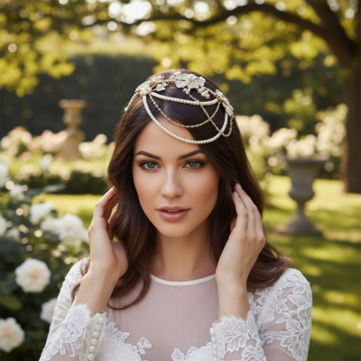 The intricate adornment drapes beautifully across the brow, creating a look of vintage luxury and timeless sophistication. With an adornment size of 15 cm x 7 cm and an elegant 5.5 cm drop, this spectacular piece is designed to command attention while adding graceful sparkle.