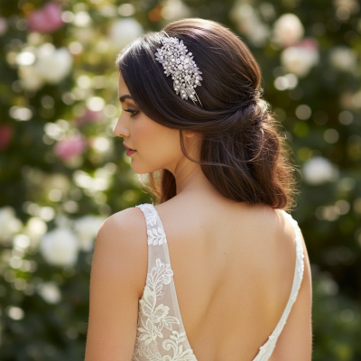 Measuring approximately 13 cm in length, the intricate design rests beautifully upon a double headband, offering both poise and comfort. Effortlessly regal and enchantingly feminine, this headpiece is perfect for brides, soirées, and moments destined to feel unforgettable.