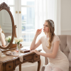 A symphony of crystals and a bouquet of pearls will add the perfect romantic flourish to your look. Exquisitely worked crystal pavé set florals rich with glowing pearl centres, pavé set leaves and tendrils of crystal drops form an elegantly embroidered crescent, waiting to bring the perfect sparkle to your day.