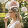 Refined and elegantly crafted, the Elite Collection headpiece features a beautiful arrangement of sparkling crystals and luminous ivory pearls, designed to add timeless sophistication to bridal and special occasion looks. Finished in radiant rhodium plating and fitted with a discreet crocodile clip at the back, it offers a secure and comfortable fit with effortless elegance.