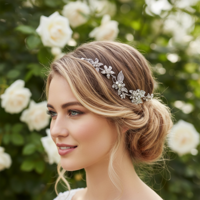 on a rhodium plated finish. Two combs are attached for a perfect fit. Size is approx 28cm long by 4cm wide