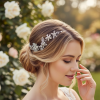 Starlet glam hair vine in a unique floral design embellished with simulated ivory pearls and high quality cz crystals