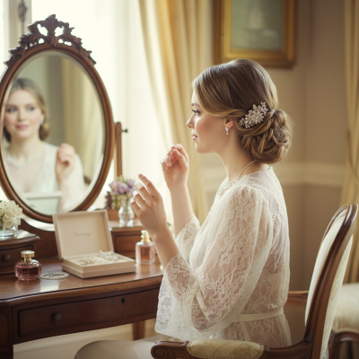 Look sweet upon the seat of a bicycle made for two with this glorious crystal daisy comb. Two gilded pavé set daisies radiate joyously, backlit by creamy white bead embellished leaves. A touch of shimmering majesty if brought by a halo of ivory pearls and the piece is finished with pavé set golden foliage. An utterly gorgeous display for your magical day.