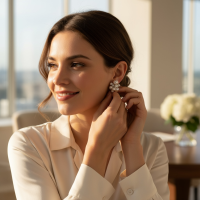 Enchanting pearl necklace set embellished with freshwater pearls and clear cz crystals on a high quality silver plated finish. Complete with a pair of matching earrings. Necklace has an adjustable chain and earring size is 1cm x 1cm