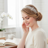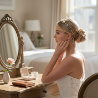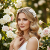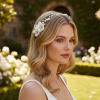 This enchanted gable spins the tale of true love. Three tropical exquisitely detailed frangipani flowers with crystal centres start and end this ethereal piece. The aura of freedom, joy and love is continued with sweet tendrils of delicate seed pearls, crystal drops and young buds all backlit by a warm golden finish. A truly exquisite free spirited detail for the perfect celebration of love.