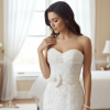 Romantic - Crystal & pearl bridal sash in a vintage inspired design - The organza flower is encrusted with clear Austrian crystals and ivory pearls on an ivory lace and satin Ribbon - Flower measures 10.5cm x 10.5cm and crystal embellishment inside the flower measures 3.5cm x 3.5cm - free size ribbon tie