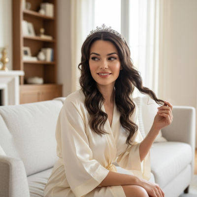 Exquisite - crystal tiara with solitaire cut crystals on a high quality plated in real silver. High quality design siz of the crystal embellishment detail is approx 24cm and 3cm high. Complete with gift box.