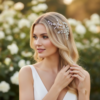 Exquisite treasure comb - inspired by vintage - embellished with high quality Austrian crystals on a silver plated finish. This is a very versatile comb can be worn in various ways. Approx 15cm wide.
