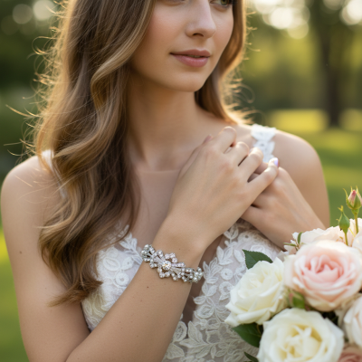 Elegant, graceful, and effortlessly chic, this enchanting bracelet is the perfect accessory for weddings, special occasions, or evenings where a hint of vintage-inspired sparkle is simply irresistible.