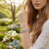 Set upon a radiant silver finish, the bracelet glimmers beautifully with every movement, adding a touch of refined sophistication to any look. The adjustable chain ensures a comfortable and perfect fit.