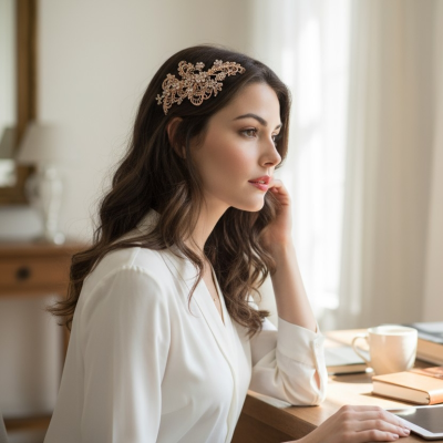 LIZA - Exquisite gatsby inspired hair comb in a unique and stylish lace effect design embellished with clear crystals on a high quality 14K Gold plated finish.
