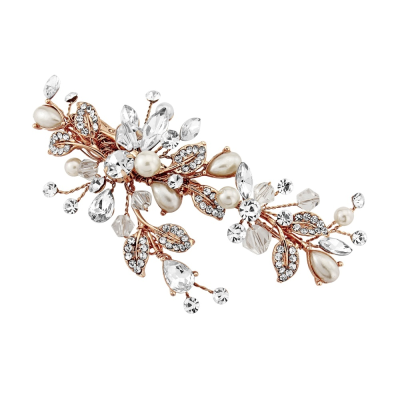 Vintage inspired headpiece - embellished with simulated ivory pearls and high quality clear crystals on a rose gold finish - a truly elegant design - fitted with a crocodile clip for a perfect fit. Can be worn in various hairstyles.