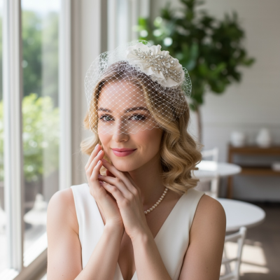 Elevate your bridal look with our enchanting vintage-inspired bird cage veil, designed to add a touch of timeless elegance to your special day. Crafted from light ivory satin, this exquisite veil features a stunning crystal-embellished sidepiece that sparkles with every movement. The convenient crocodile clip ensures a secure and comfortable fit, allowing you to focus on making memories while looking effortlessly chic. Perfect for the modern bride with a love for classic charm, this veil is a must-have accessory for your wedding ensemble.