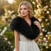 Black Vintage inspired genuine marabou feather bridal stole. High quality Glamorous and stylish.. This stole is manufactured with a hook and eye fastening. Size is 100cm long and 20cm wide. Complete in presentation box.